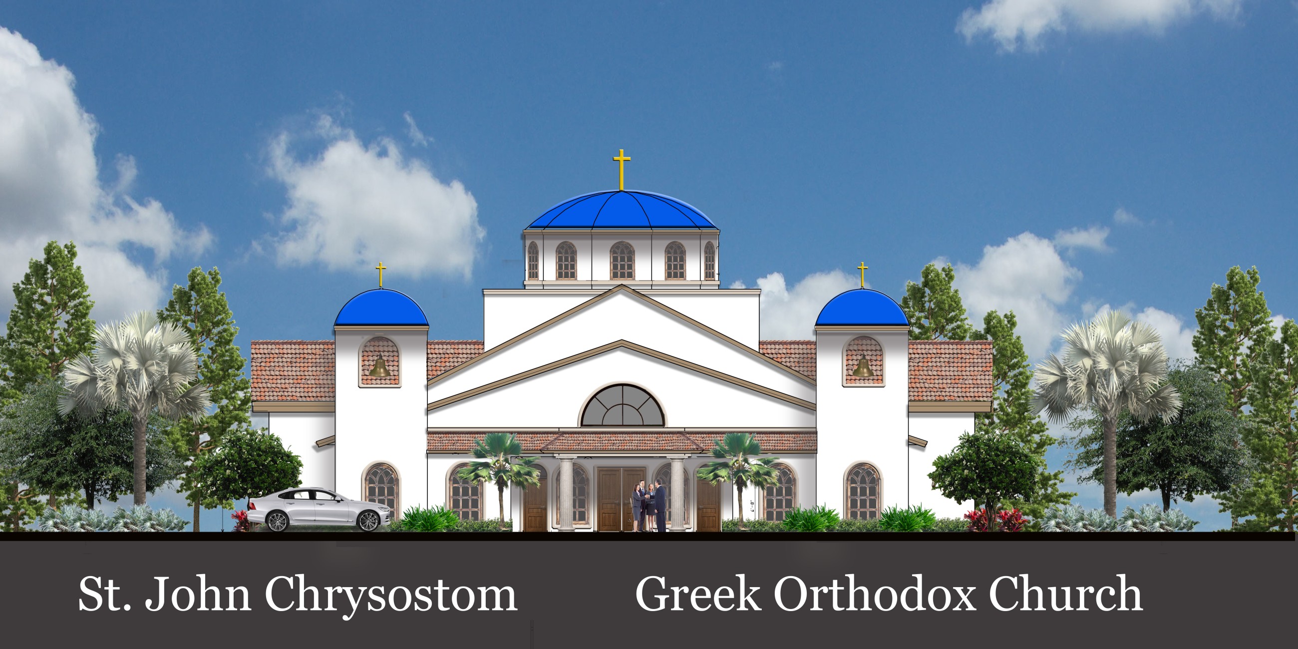 We are excited to announce that we have completed the preliminary design of our future St. John Chrysostom Church. Detailed architectural and site plans have been prepared under the direction of our Building Committee, comprised of a group of our parishioners under the guidance of a committee from our Metropolis of Atlanta. The plans are under review. Pending formal approval of the submitted plans, the rendering above depicts our future church.